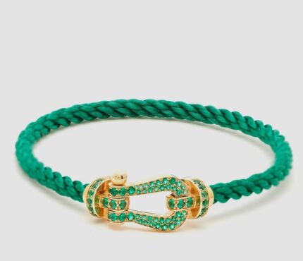 7.850,00€Icône de la maison Fred, ce bracelet Force 10 associe l’or jaune 18 carats à un câble vert émeraude pour un style audacieux et raffiné.