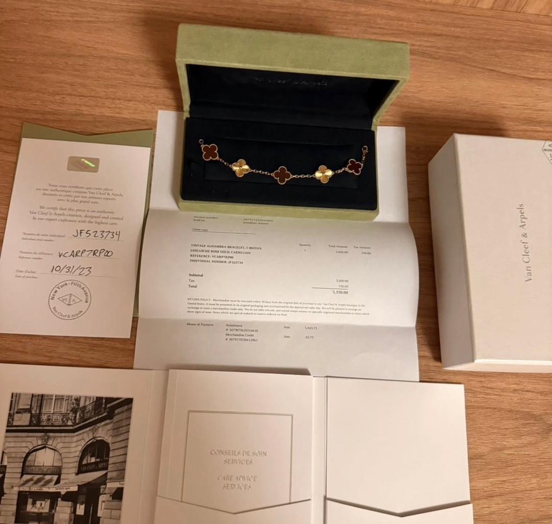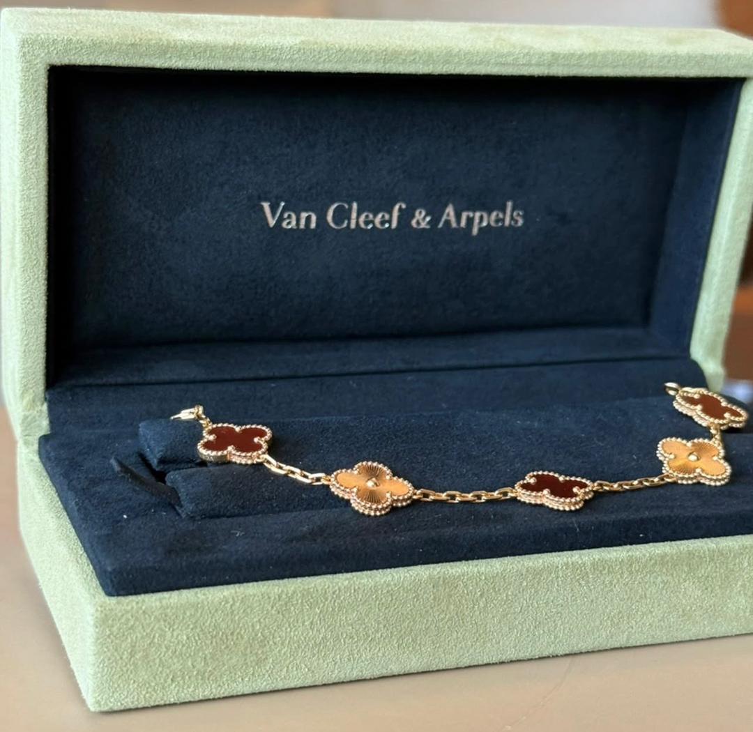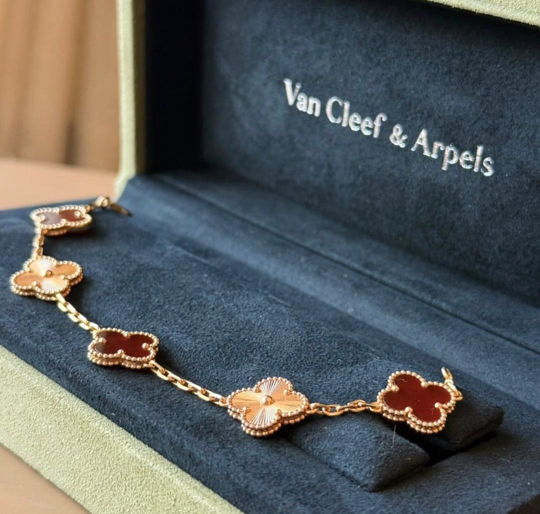 Bracelet Alhambra en or rose 18 carats et cornaline de VanCleef & Arpels, avec boite et certificat.
