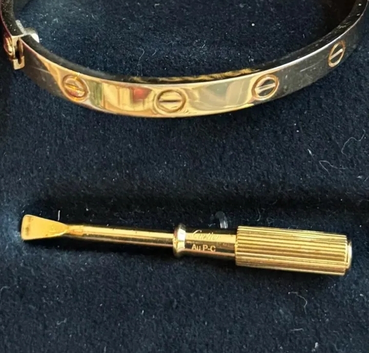 Le bracelet présente les célèbres vis Cartier, symbole de la collection Love, alliant raffinement et sécurité. Il est livré complet avec ses accessoires d’origine :