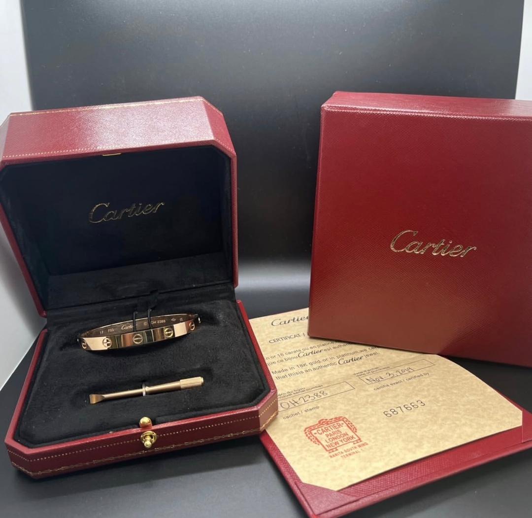 Bracelet Cartier Love Or Rose 18K – Taille 16 – Ensemble Complet, Excellent État