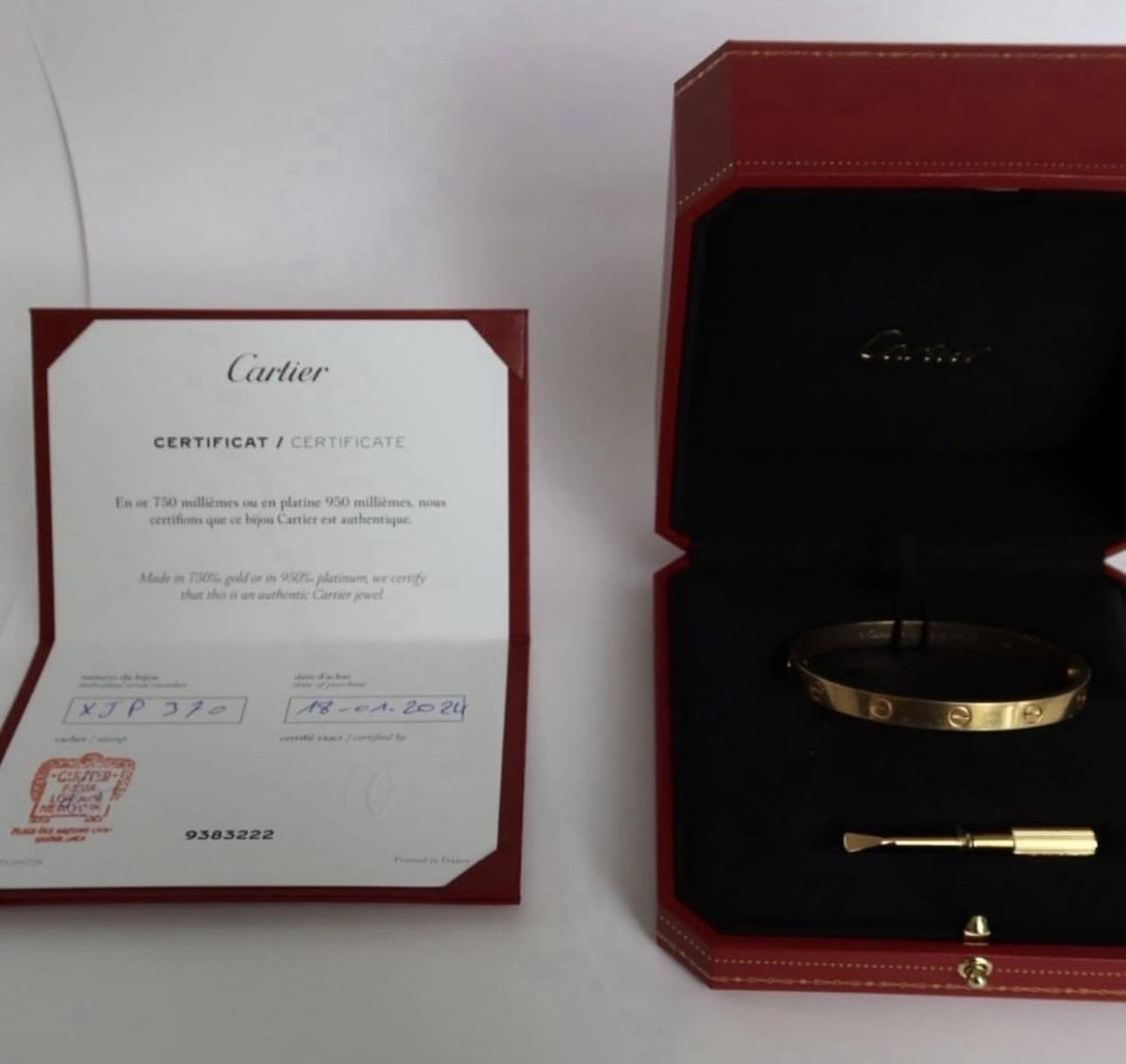 Bracelet Cartier Love en or jaune 18 carats, taille classique, avec boîte et papiers d’origine (2023). Un bijou emblématique et intemporel signé Cartier, symbole d’élégance et de raffinement.