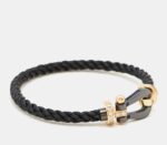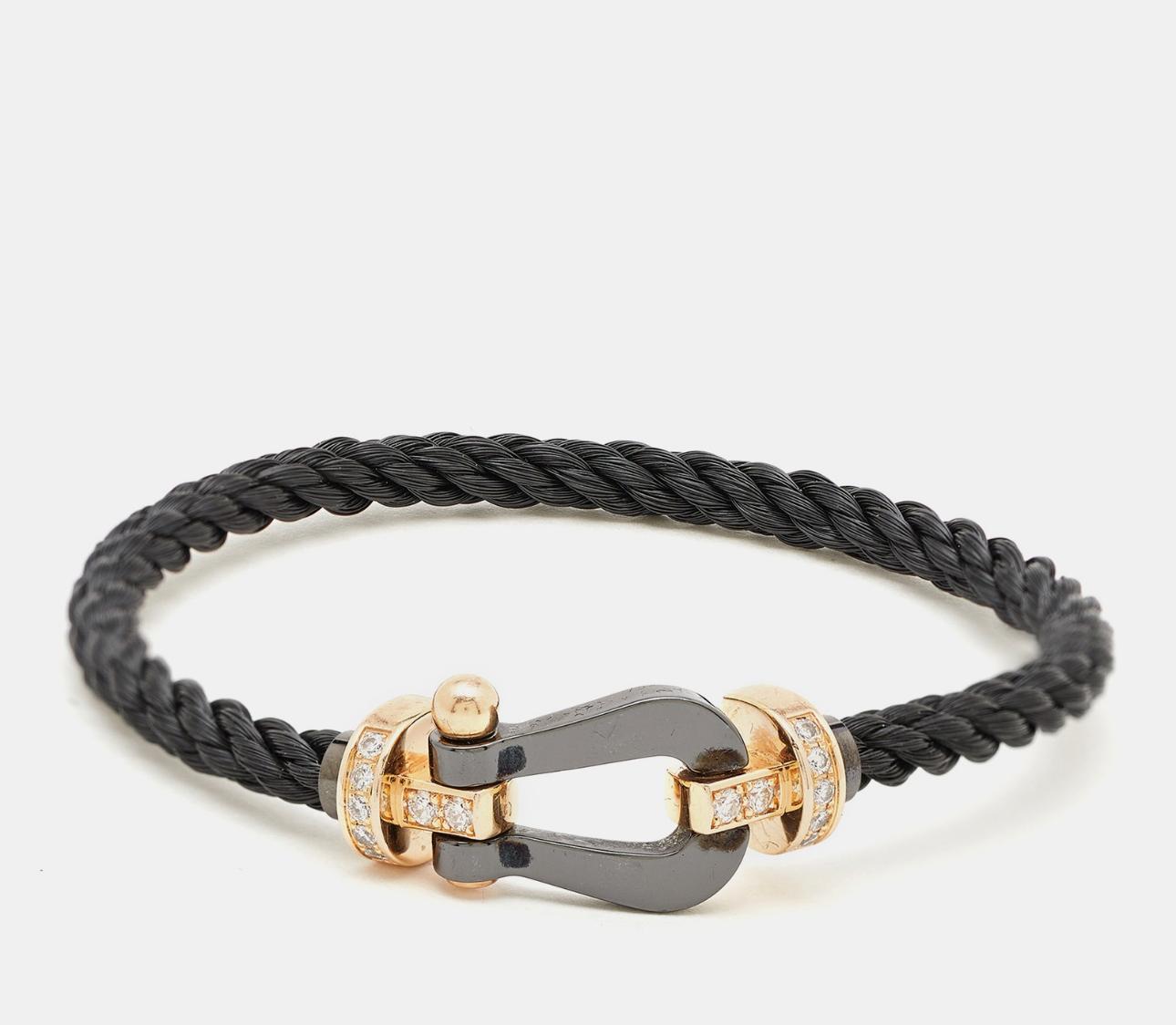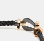 Icône de la maison Fred, le bracelet Force 10 se réinvente en or rose, diamants et céramique, sublimé par un câble noir raffiné.
