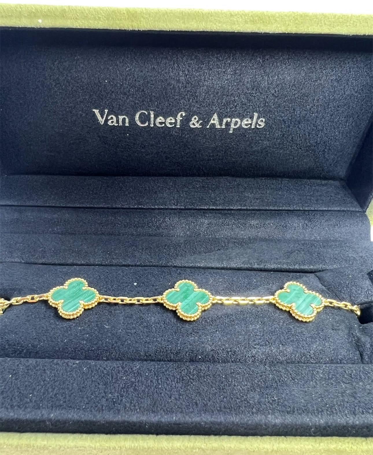 Bracelet Van Cleef & Arpels 5 Motifs Malachite en Or Jaune 18k – Avec Boîte & Certificat