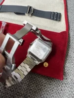 Le bracelet en acier inoxydable, assorti au boîtier, offre confort et polyvalence, et peut être ajusté facilement grâce au système SmartLink. Livrée avec coffret et papiers d’origine, la Cartier Santos 2025 WSSA0037 est idéale pour les amateurs de garde-temps de prestige souhaitant combiner modernité, design iconique et savoir-faire horloger.