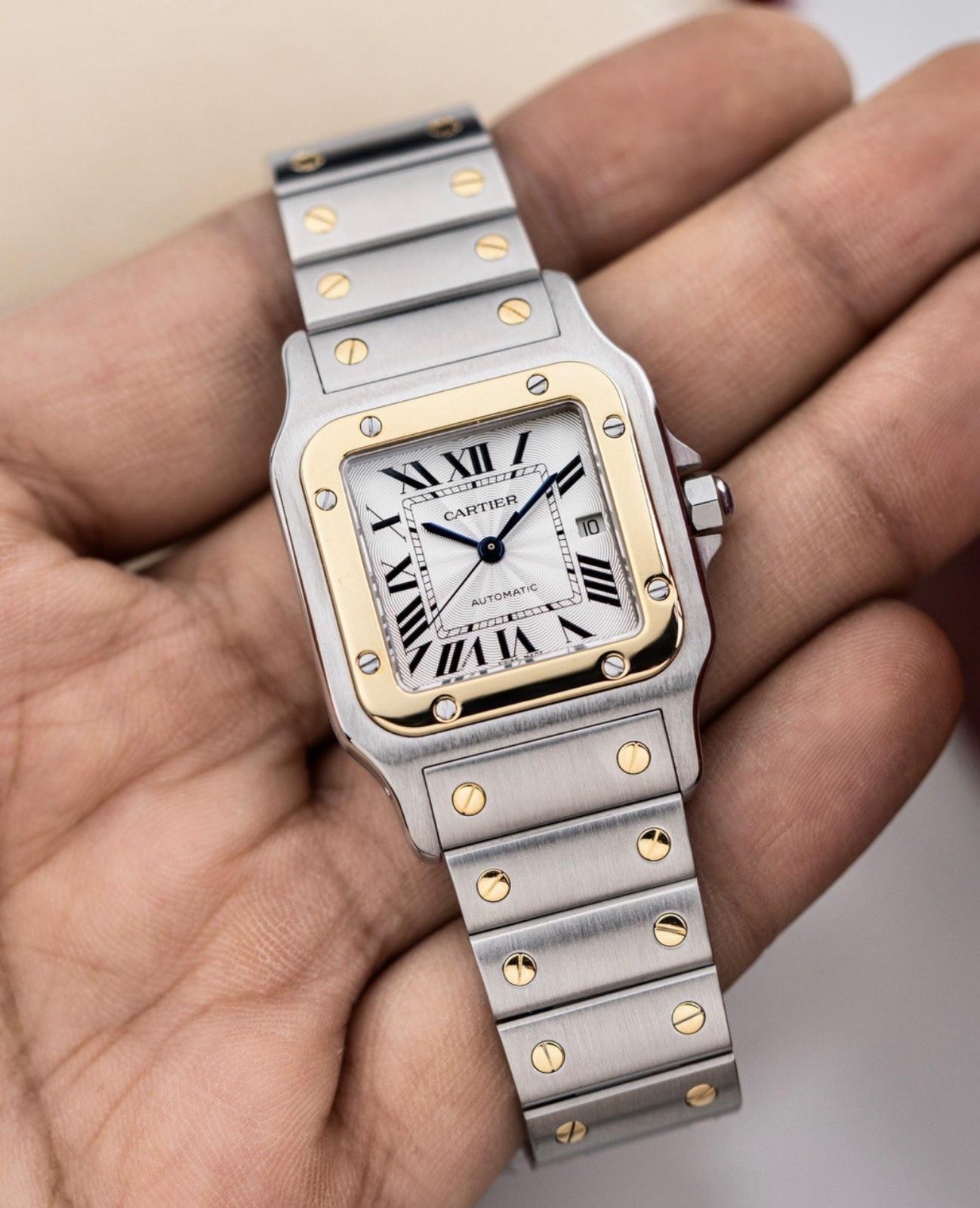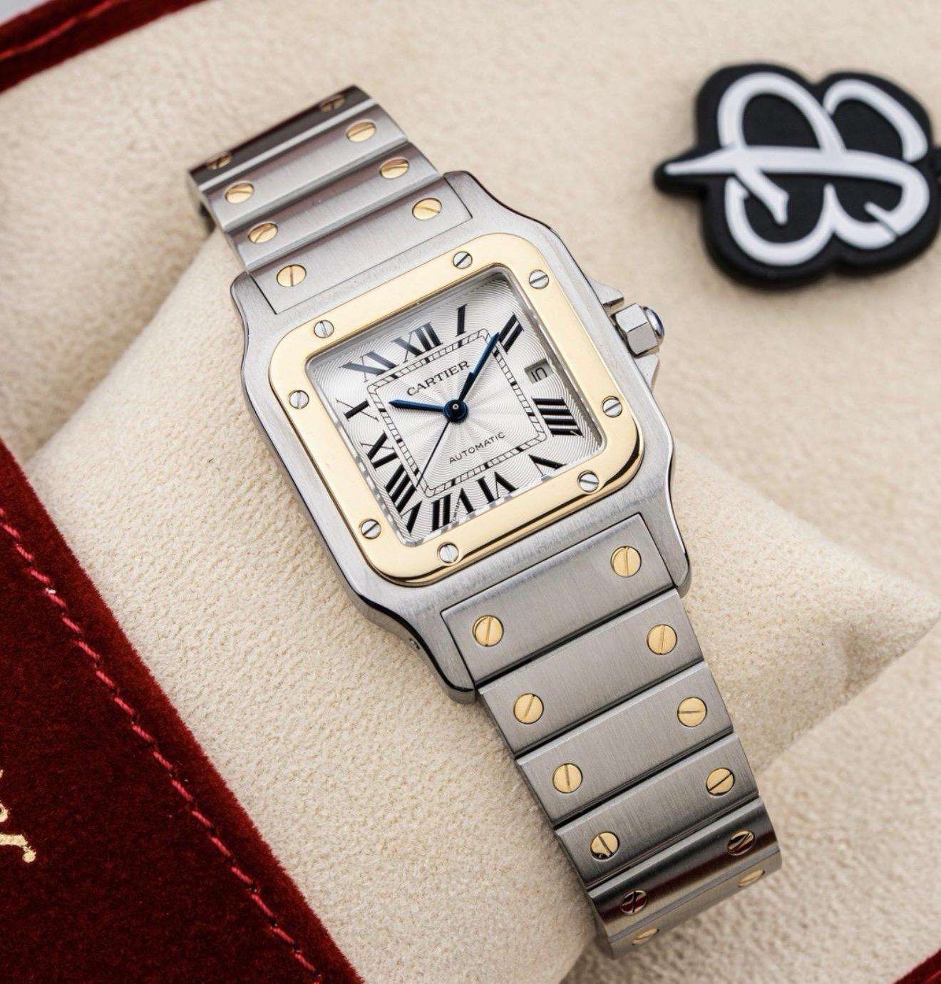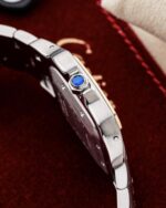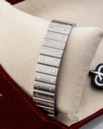Le bracelet bicolore en acier inoxydable et or jaune renforce son allure luxueuse, tandis que l’affichage de la date ajoute une fonctionnalité pratique. Avec son diamètre de 29 mm, cette Santos Galbée convient aussi bien aux hommes qu’aux amateurs de montres au format élégant et discret.