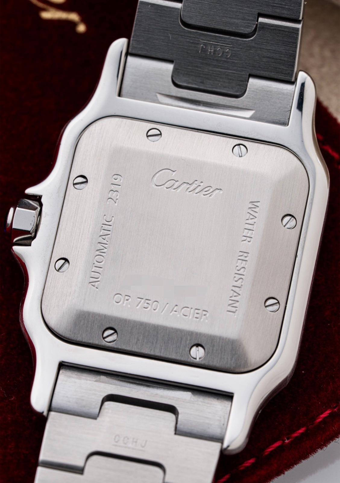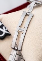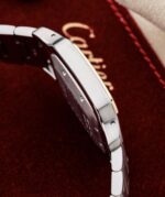 Son cadran argenté guilloché, orné de chiffres romains signature Cartier, garantit une lisibilité parfaite et une esthétique sophistiquée. Animée par un mouvement mécanique automatique suisse, cette montre assure une précision fiable et un confort optimal au quotidien.