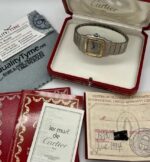 Cette montre est livrée avec sa boîte d’origine, son manuel et ses documents Cartier officiels, assurant son authenticité. Un véritable symbole de raffinement et de prestige horloger suisse, idéal pour enrichir toute collection de montres de luxe.