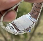 Découvrez la Montre Cartier Santos Large ADLC réf. WSSA0037, un garde-temps emblématique de la maison Cartier alliant élégance, innovation et robustesse. Conçue pour les hommes modernes, cette montre de luxe de 2021 séduit par son cadran gris sophistiqué, ses chiffres romains iconiques, et son bracelet double (acier et caoutchouc) offrant confort et style.
