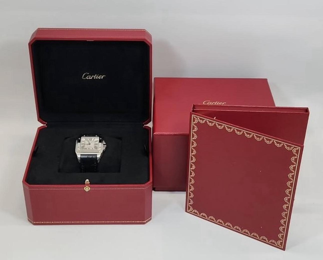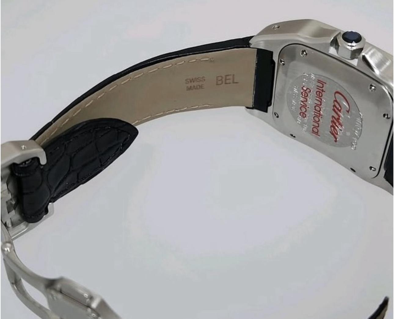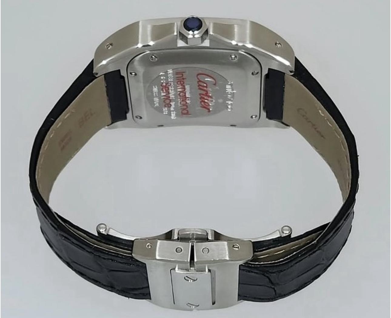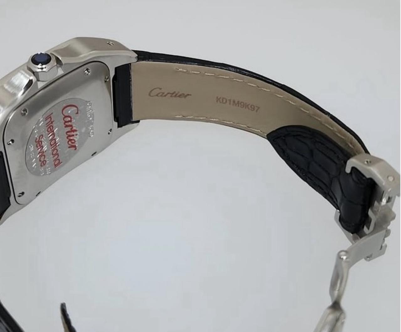 Livrée avec sa boîte et papiers d’origine, ainsi que tous ses accessoires (certificat de garantie, manuel d’instructions, disque DVD et reçu), cette Santos 100 est un choix idéal pour les collectionneurs et amateurs de haute horlogerie.