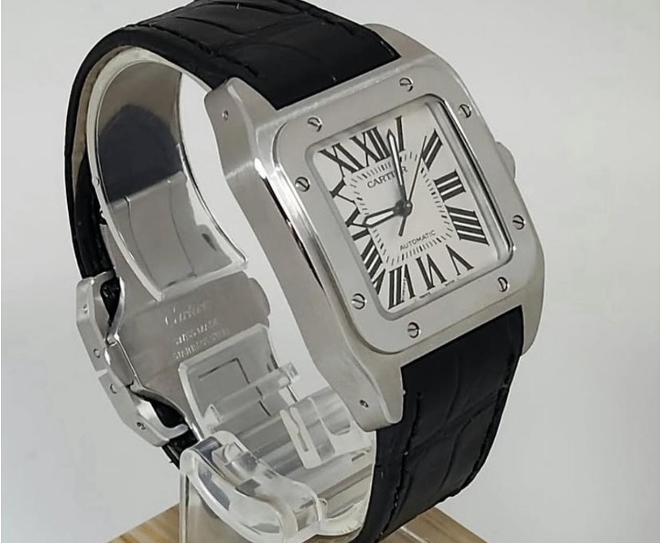 Montre automatique Cartier Santos 100 en acier inoxydable – Taille moyenne W20106X8