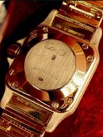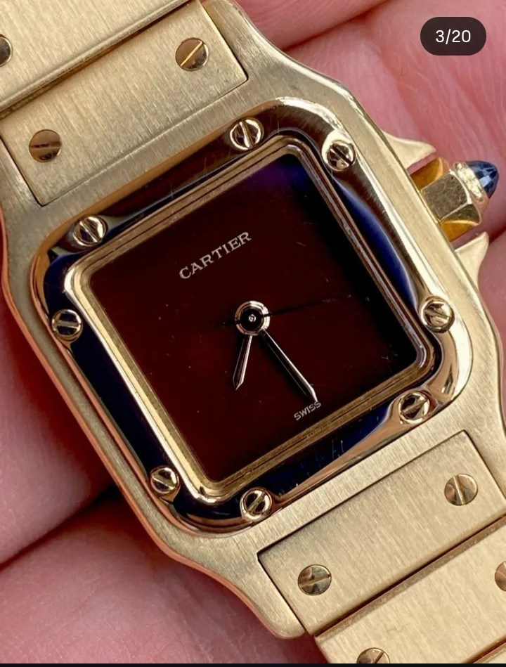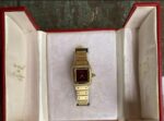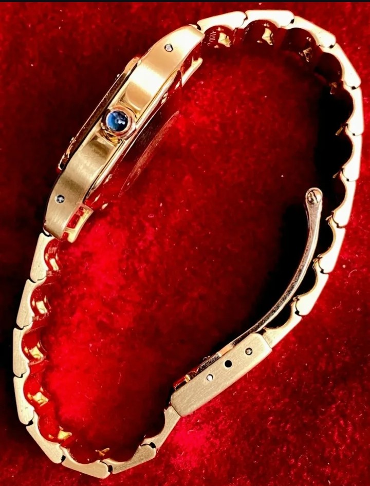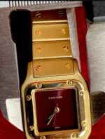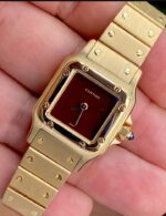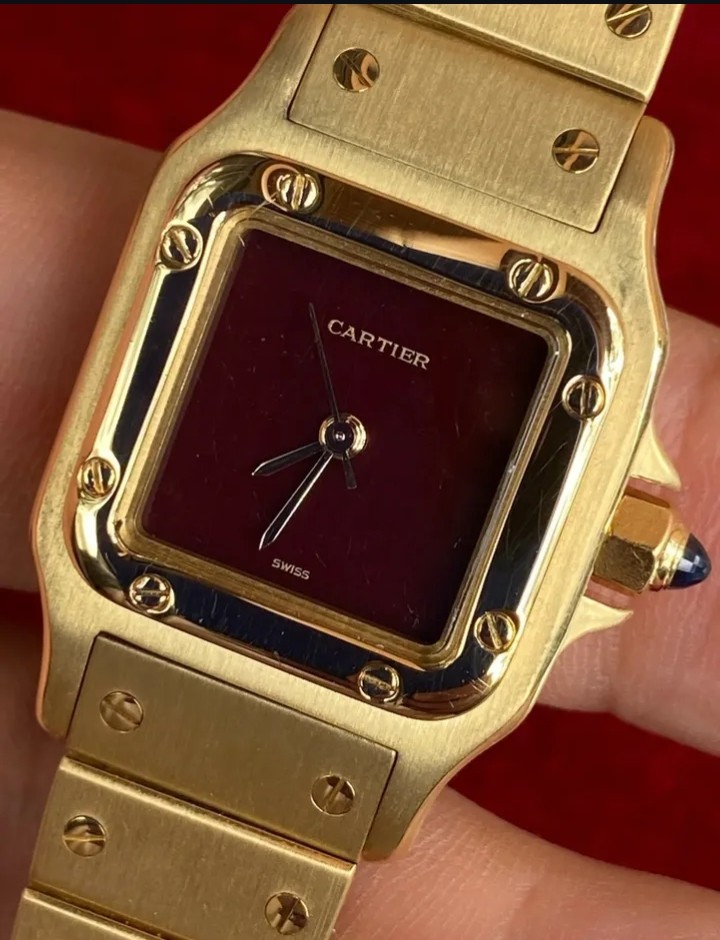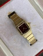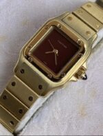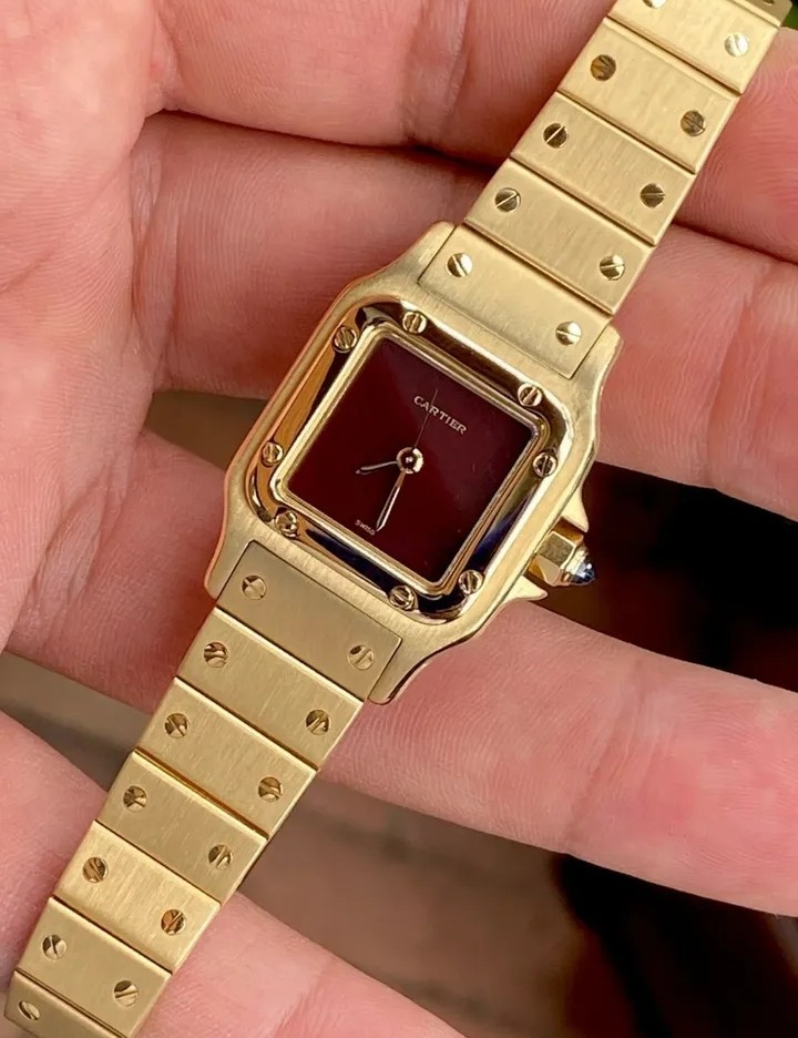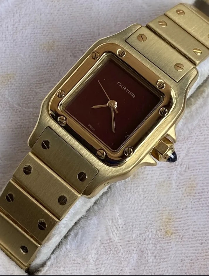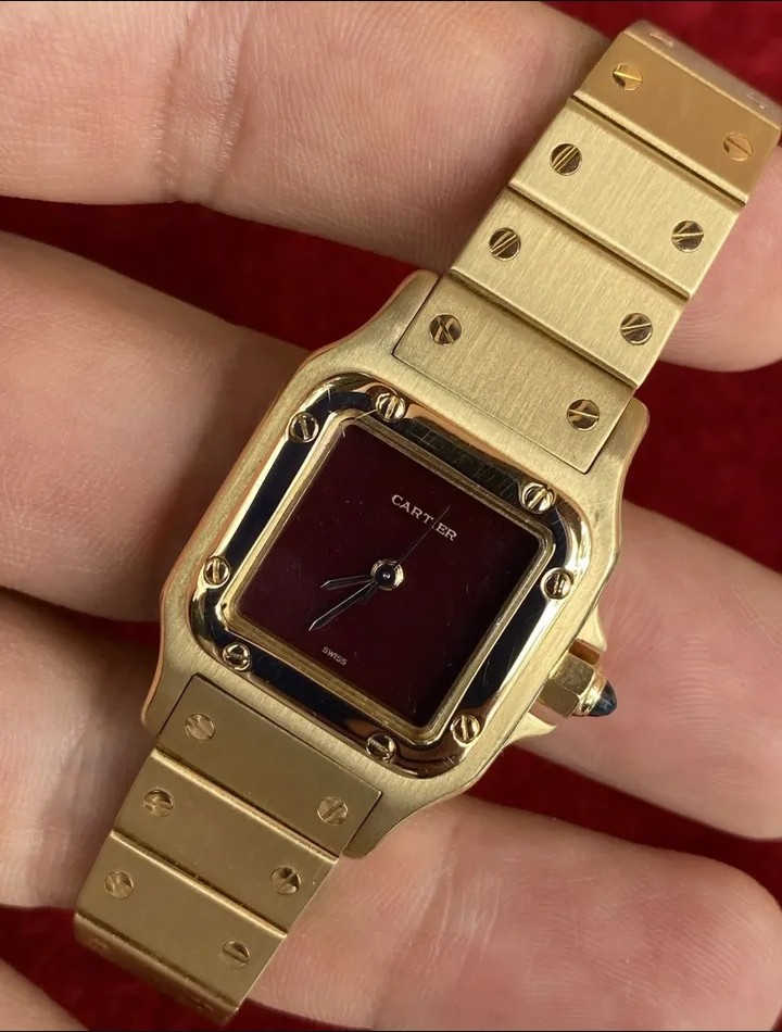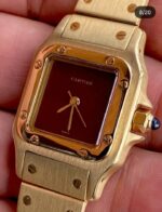 Montre Cartier Santos Carrée Femme 24 mm 18 carats YG 90 grs Bordeaux Automatique