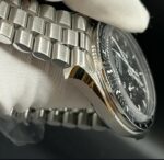 Son boîtier en acier inoxydable de 42 mm, sa lunette tachymétrique en aluminium anodisé noir et son cadran noir emblématique en font un garde-temps aussi prestigieux qu’intemporel.