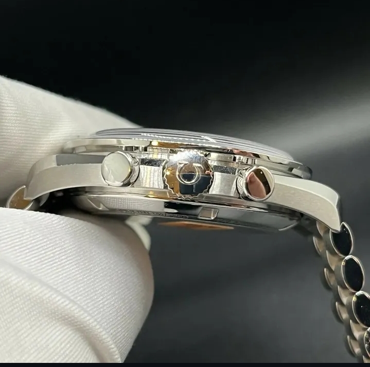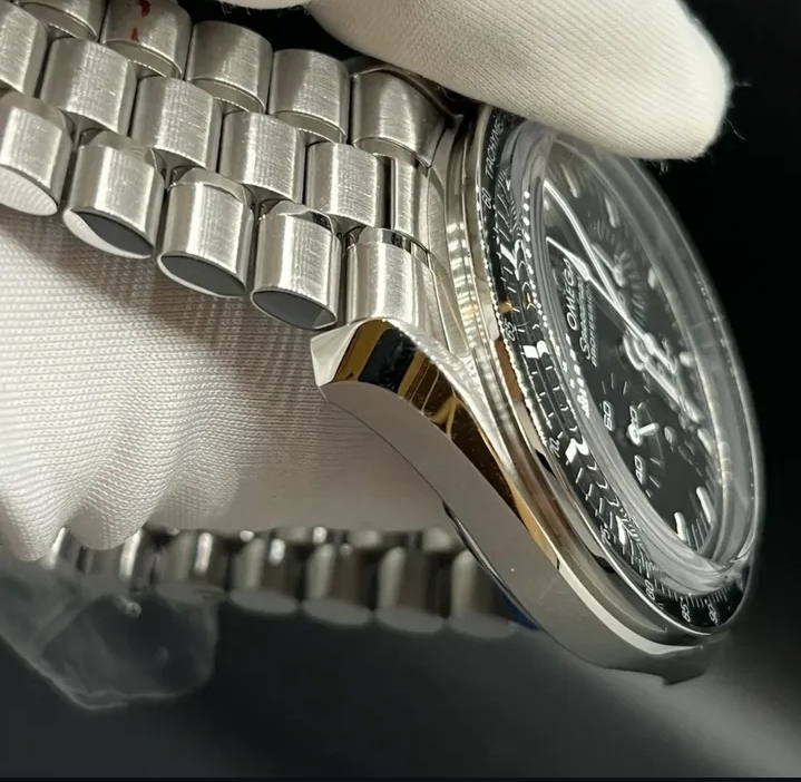 À l’intérieur, on retrouve le calibre Omega 3861, un chronographe à remontage manuel certifié Master Chronometer par METAS, offrant une précision et une résistance antimagnétique exceptionnelles.